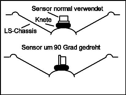 Entsprechend obigem Polar-Diagramm müsste der Sensor deutlich weniger Körperschall aufnehmen, wenn er wie in der Skizze rechts: