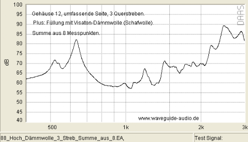 In einer weiteren Stufe wurde dann mit Dämmmaterial (von Visaton mit Schafwollanteil) gemessen.